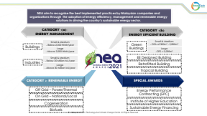 | Report: | Entries to the 4th edition of the National Energy Award 2021 will be closing on 26 Feb 2021 and judging will commence in Mar 2021 with the results presented to the Ministry for endorsement in Apr. The winners of the various categories will then represent Malaysia to the ASEAN Energy Award AEA 2021 competition. This online session was convened to brief the judges on the judging criteria, timelines etc. |